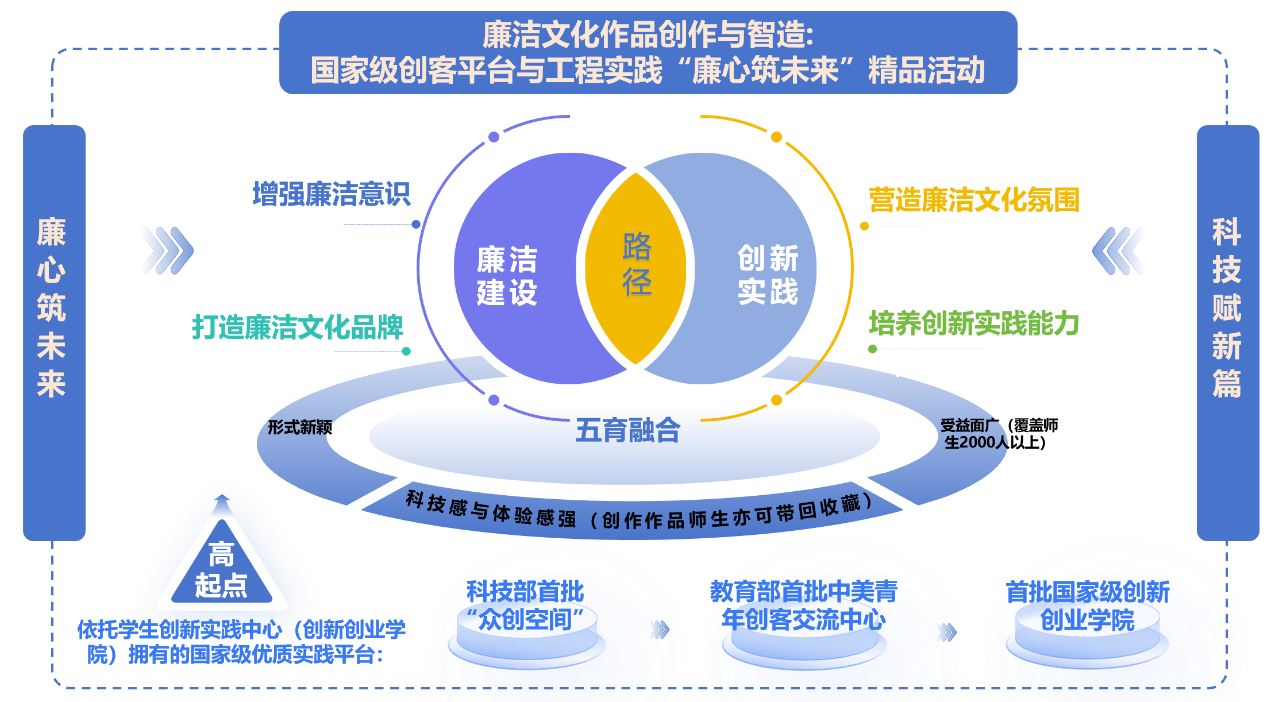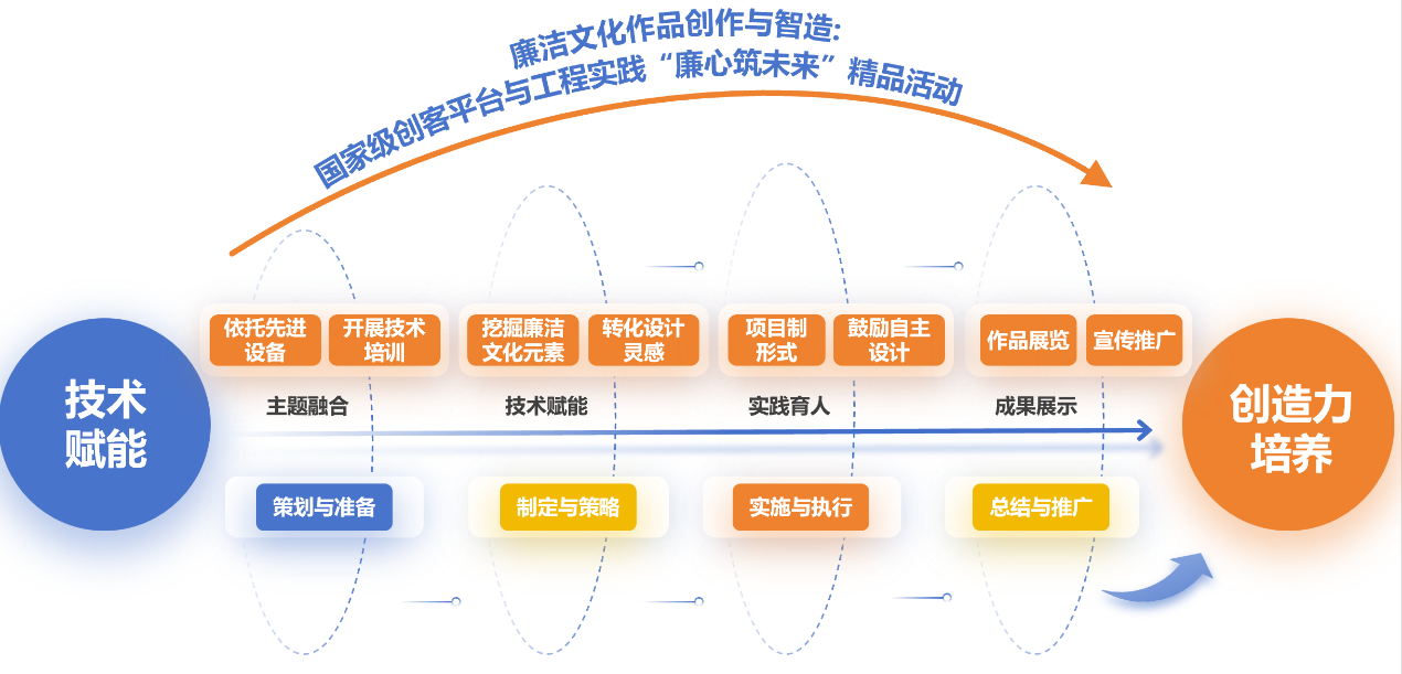 目前,活动已进入“展评悟‘廉’”的筹备阶段。后续将开展举办两大核心活动:一是“廉洁文化创意工坊”开放日,邀请全校师生走进制作现场,观摩作品从设计到成型的全过程,感受“廉洁+科技”的创作魅力;二是“廉心筑未来”廉洁文化作品展,届时将邀请相关专业教授、校内外工艺美术大师及学生代表组成评审团,从“文化内涵”“技术创新”“美学价值”三个维度评选优秀作品。