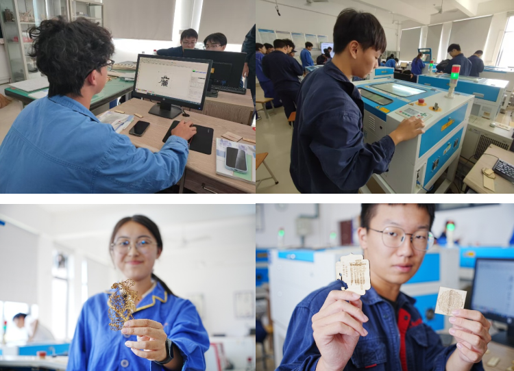 依托科技部首批众创空间及先进设备资源,活动开设专项技术培训课程,帮助学生掌握数字化设计与智能制造技能。在激光雕刻实践中,学生以莲花、翠竹等象征廉洁的图案为素材,将“出淤泥而不染”“虚心劲节”等精神寓意融入作品设计;通过3D打印技术,廉洁文化生肖模型、桌面屏风等创意作品层层“打印”而出,让廉洁精神在科技实践中生动传承。