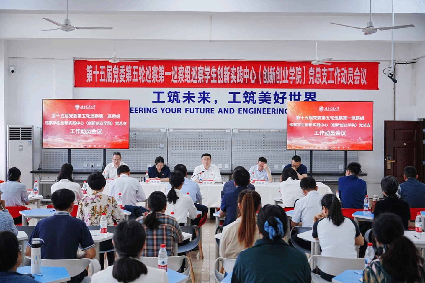 根据学校党委关于巡察工作的统一部署,10月16日,第十五届党委第五轮巡察第一巡察组巡察学生创新实践中心(创新创业学院)党总支工作动员会在犀浦校区工训A座410会议室召开。学校党委副书记、纪委书记、巡察工作领导小组副组长夏玉峰代表学校党委对扎实开展本轮巡察工作提出要求,第一巡察组组长朱志武通报巡察重点任务和相关安排,学生创新实践中心(创新创业学院)党总支书记张江泉代表中心(学院)党总支作表态发言。会议由中心(学院)主任(院长)贺剑主持。