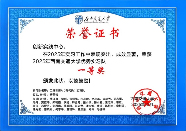 近日,学校公布了2025年本科优秀实习队评选结果,中心申报的 “工程训练A(电气类)实习队”在评选中荣获一等奖。